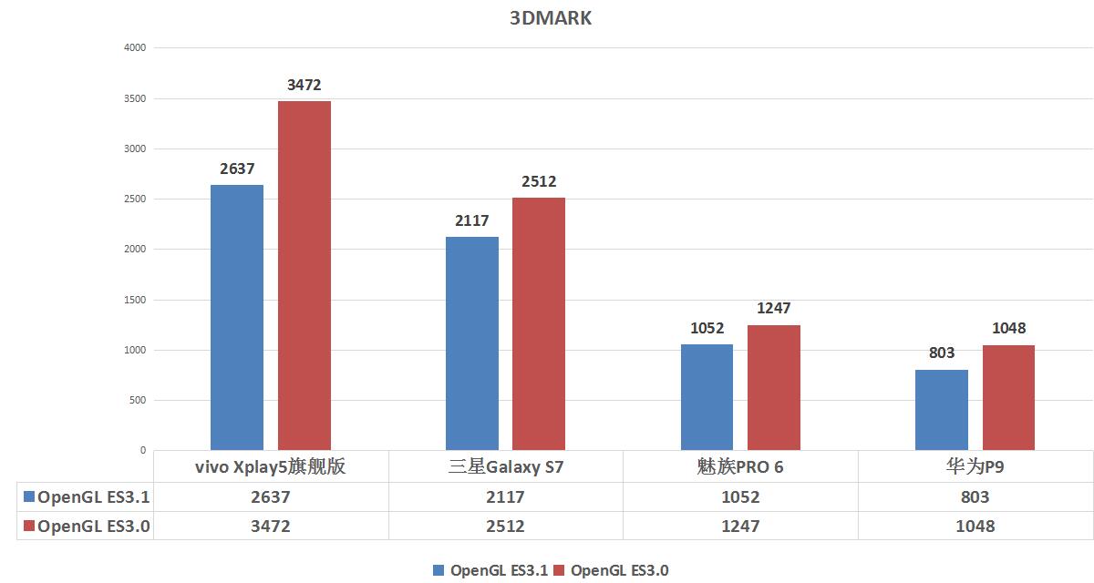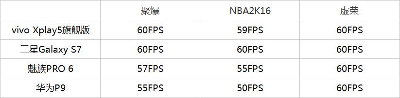 (OpenGL ES3.1)vivo Xplay5旗艦版>三星Galaxy S7>魅族PRO 6> 華為P9