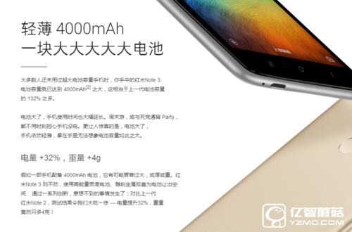 紅米Note 3同樣是一臺(tái)續(xù)航神器,從目前來(lái)看,除了最新的小米Max這個(gè)bug級(jí)存在外,該機(jī)是整個(gè)小米手機(jī)家族中當(dāng)之無(wú)愧的續(xù)航NO.1。它內(nèi)置了一塊4050mAh容量(典型值)電池,加上優(yōu)化成熟的MIUI,都讓它用起來(lái)電力十足。