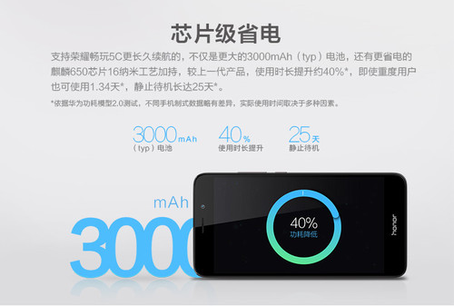 榮耀暢玩5C在電池容量上是最少的,3000mAh容量在其他三款機(jī)型面前顯得有點(diǎn)單薄。不過(guò)可別忘了這款手機(jī)還有一個(gè)殺手锏,那就是16nm制程工藝的麒麟650芯片,這款處理器在功耗上的優(yōu)化相當(dāng)之出色,我之前對(duì)它的續(xù)航進(jìn)行過(guò)測(cè)試,最終的表現(xiàn)確實(shí)令我意外。