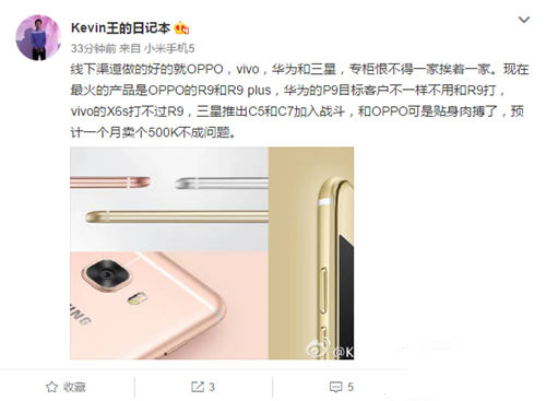 @Kevin王的日記本表示,目前線下渠道做的最好的是OPPO,vivo,華為和三星,其中華為和OPPO的目標用戶不同,而vivo的X6s又不是R9的對手。