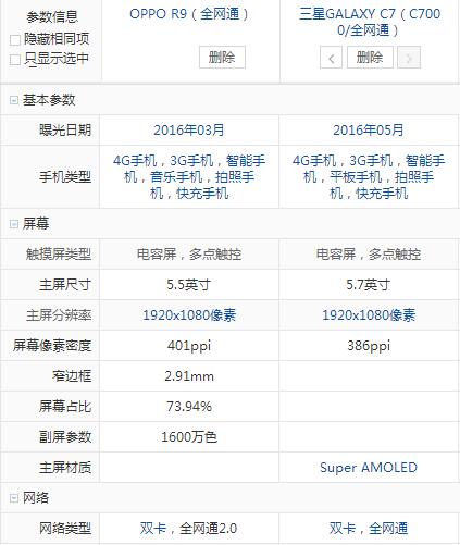 三星 C7和OPPO R9配置參數全面對比評測: