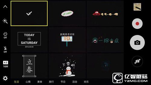 最后我們再來看看成像上的表現。此次C系列兩款新機均采用了前置800W+后置1600W像素攝像頭的組合,均為F1.9大光圈。這次比較有意思的是,在拍照方面C5/C7可以添加水印,增加了攝影了趣味性。