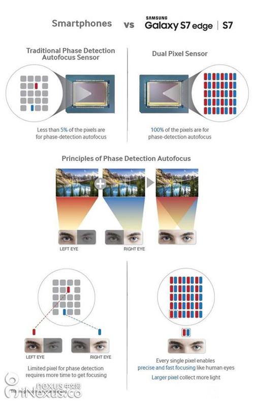 三星在Galaxy S7edge上還使用了“黑科技”——Dual-Pixel技術(shù),中文名為全像素雙核。那么這個(gè)全像素雙核是個(gè)什么鬼呢?