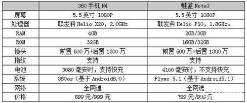 對比發現,在硬件上,360手機N4無論是十核處理器的引入,還是4GB RAM+32GB ROM,不僅強力碾壓魅藍Note3,甚至在整個千元機市場也是獨領風騷。尤其是4GB內存在千元機中的引入,再次打破了千元機的配置水準。