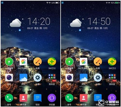 360手機(jī)N4充電測(cè)試:左圖為充電前,右圖為充電30分鐘后