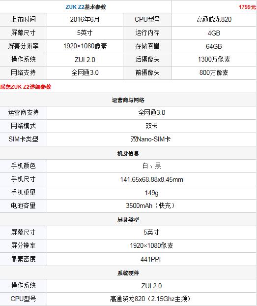先來ZUK Z2各個細節方面有全面了解,詳細配置如下所示: