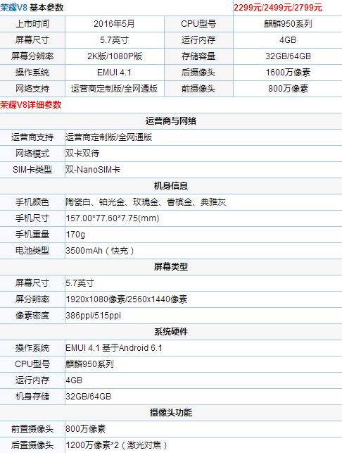 文章最后附上ZUK Z2和榮耀V8詳細參數(shù),想要全面了解這款手機各個參數(shù)細節(jié)方面的朋友,不妨詳細看看。