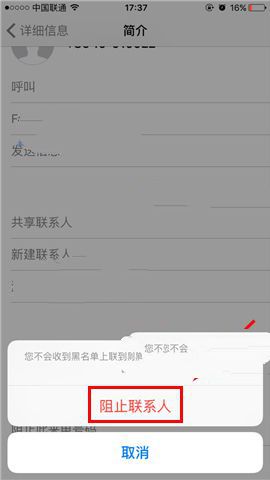3)接著點擊【阻止此來電號碼】,最后點擊【阻止聯系人】就可以了。(如下圖)