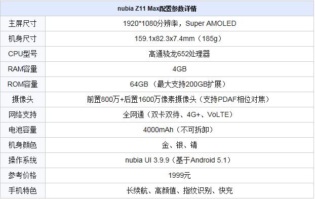 先來看看努比亞Z11 Max參數詳情,具體如下所示:nubia