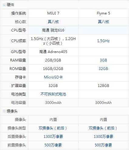 紅米3s和魅藍3s配置參數(shù)詳細對比: