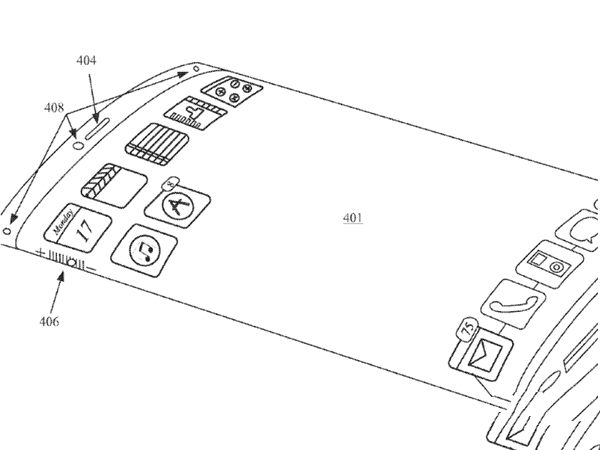 現在,美國商標局給出的專利顯示,蘋果已經獲得了一項“配有環繞式顯示屏的電子設備”的專利,其展示的正是如何為iPhone配備柔性屏。