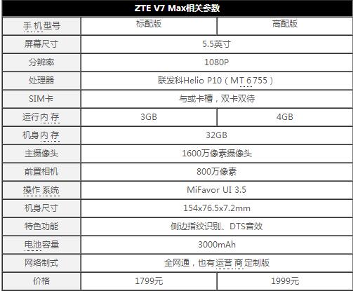 過去的一段時間,中興全面精簡了自家的產品線,形成了主打高端的AXON系列,ZTE年輕時尚精品系列和Blade系列。AXON系列是進軍高端市場,提升品牌溢價的主力,ZTE系列順勢布局中端市場,而Blade系列則是直接與國內的互聯網品牌進行競爭,主打性價比沖擊銷量。因此從定位不難推斷,ZTE V7 Max的配置并不旗艦,但絕對滿足日常的使用,設計不廉價,主推品質感,甚至會有一些AXON的影子。下面我們先通過一項表格來簡單了解一下ZTE V7 Max的相關參數。