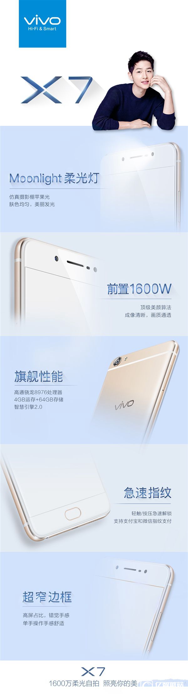 同時,X7還將內置1600萬像素前置攝像頭,并加入全新Moonlight柔光燈,讓自拍者的皮膚更紅潤通透。