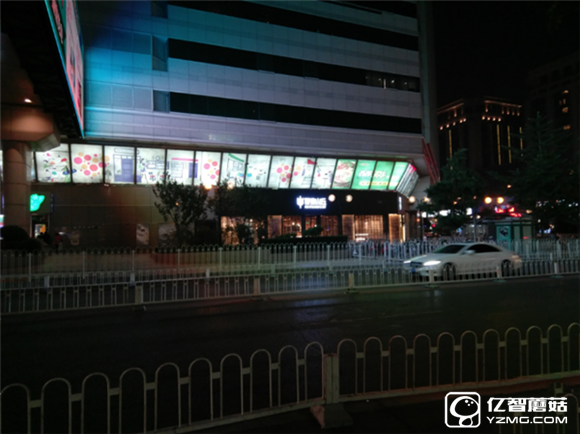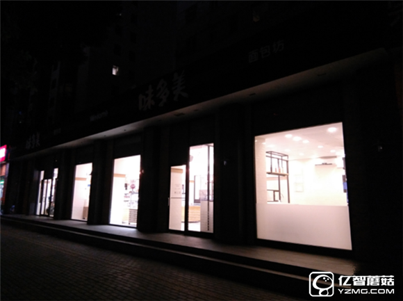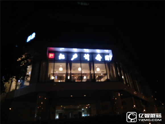 網上一直流傳聯想ZUK Z2工程機在夜景中偶爾出現對不上焦的說法,這次我們也遇到了。無論是自動模式還是手動對焦,聯想ZUK Z2都無法將面包店和壽司店的招牌清晰還原出來。
