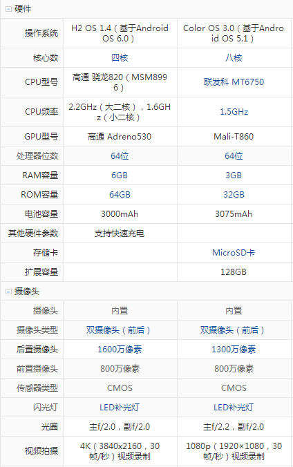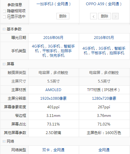 一加手機 3和OPPO A59配置參數詳細對比: