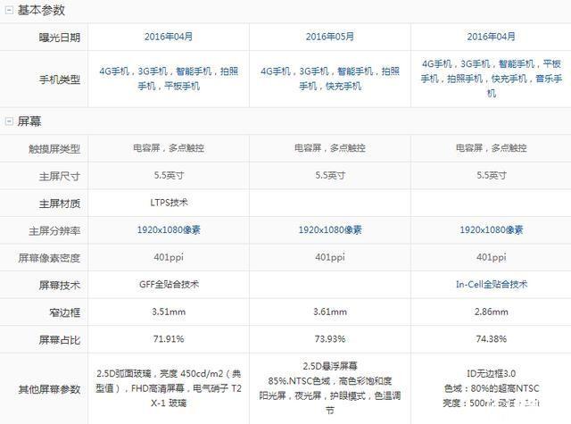 首先要了解的是這幾款手機的基本參數,話不多說,看圖。