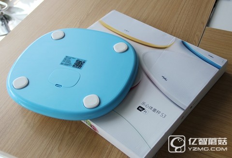 樂心體重秤S3的外觀設計的很圓滑,沒有突出的邊角,大小適中。這次拿到的是藍色款,還有玫紅、黃色、白色、綠色共五種顏色可供挑選,個人還是比較喜歡這款藍色,原因就心照不宣啦。