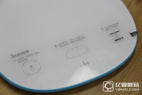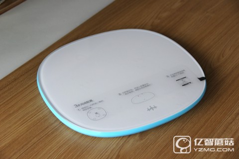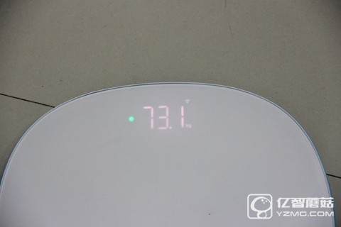 秤面的上方配備了一塊高亮度的LED指示燈,不過平時是看不到指示燈的,只有在開機承重時才會顯示出來,同時指示燈和WIFI信號也在上面顯示。