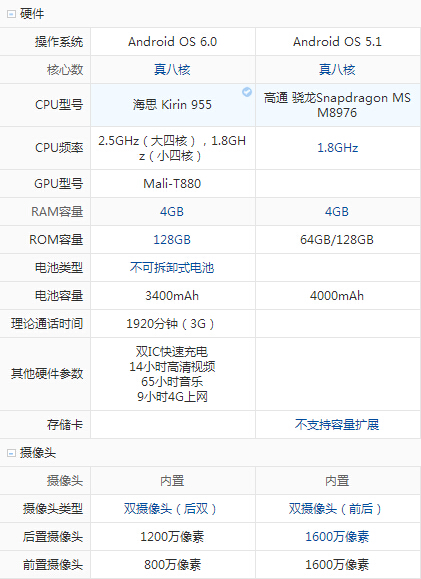 處理器采用海思麒麟955處理器,4GB運存+64GB存儲,只有這一個存儲組合版本,支持擴展。