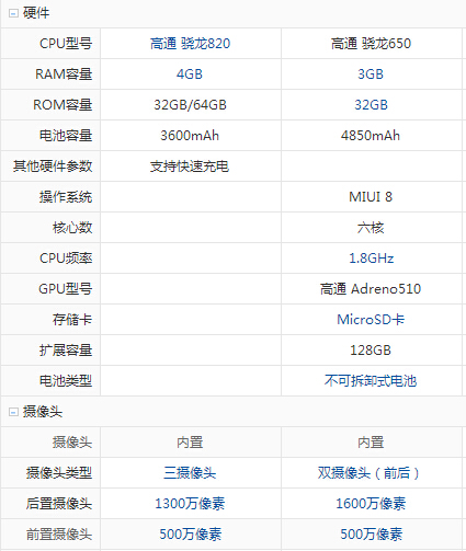 小米Max采用驍龍650/652處理器,搭配了4GB RAM+128GB ROM。