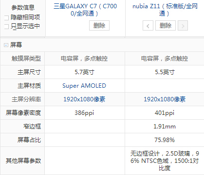 三星 C7和nubia Z11配置參數(shù)詳細對比: