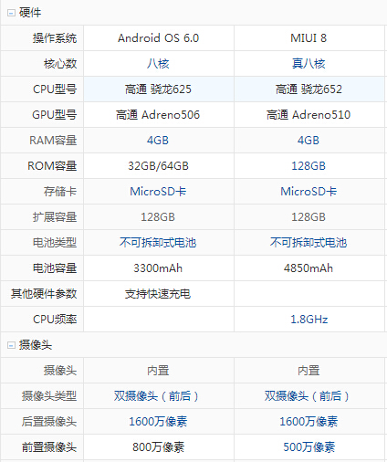 小米Max采用驍龍650/652處理器,搭配了4GB RAM+128GB ROM。在拍照方面,小米Max采用了1600萬像素攝像頭,支持光學防抖和相位對焦。