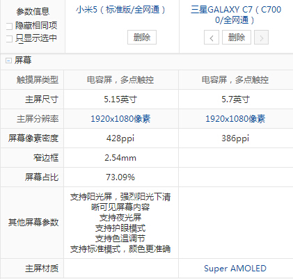 三星 C7和小米5配置參數詳細對比: