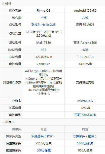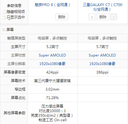 三星 C7和魅族pro6配置參數詳細對比: