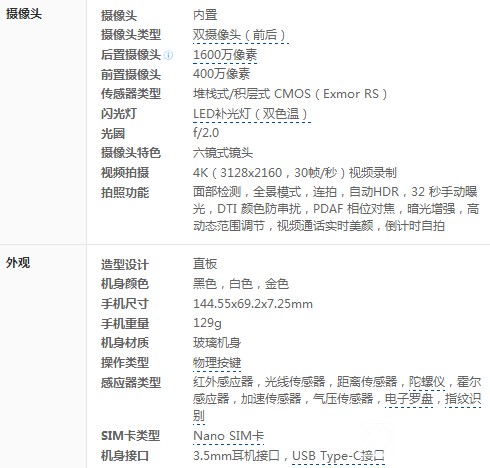 搭載高通驍龍820處理器,配備3G/4G LPDDR4雙通道內(nèi)存,采用32GB/64GB/128GB UFS2.0高速閃存,同時支持4G+網(wǎng)絡,最高下載速率600Mbps,支持VoLTE語音技術(shù),采用USB-Type-C接口,支持全功能NFC。小米5后置攝像頭采用了索尼1600萬4軸防抖相機,支持相位對焦,前置相機則是2微米400萬像素攝像頭,電池容量為3000mAh,支持快充3.0,一個小時可充滿80%~90%。