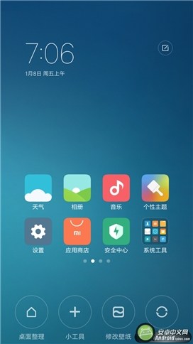 相比之前,MIUI 8的系統應用圖標依舊采用了圓角矩形,但在例如安全中心、瀏覽器等的一些圖形上進行了改進,整體更為協調與直觀。此外,在主界面點按菜單鍵后,不僅可以對正在運行的應用進行一鍵清理操作,更可直接打開音樂播放器,整個系統的娛樂性相比之前也有所提升。
