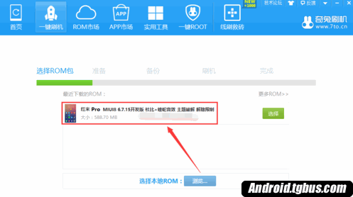 將紅米Pro通過(guò)USB數(shù)據(jù)線與電腦進(jìn)行連接,運(yùn)行“奇兔刷機(jī)”工具,待紅米Pro被成功識(shí)別后,切換到“一鍵刷機(jī)”選項(xiàng)卡,點(diǎn)擊“瀏覽”按鈕以選擇本地刷機(jī)包。
