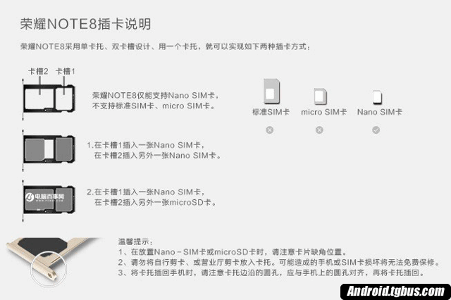 榮耀Note8插卡須知: