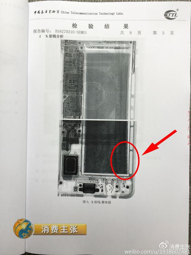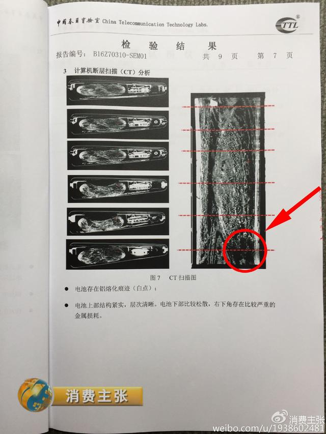 跟上次送檢方是三星公司不同,這次是回先生、張思童委托“中央電視臺《消費主張》欄目”進行送檢,雖然是同一家檢測機構,依據的還是同上次一樣的檢測方法——X射線成像及計算機斷層掃描、對電池進行內部結構分析等,但是得出的結論卻和上次完全相反!