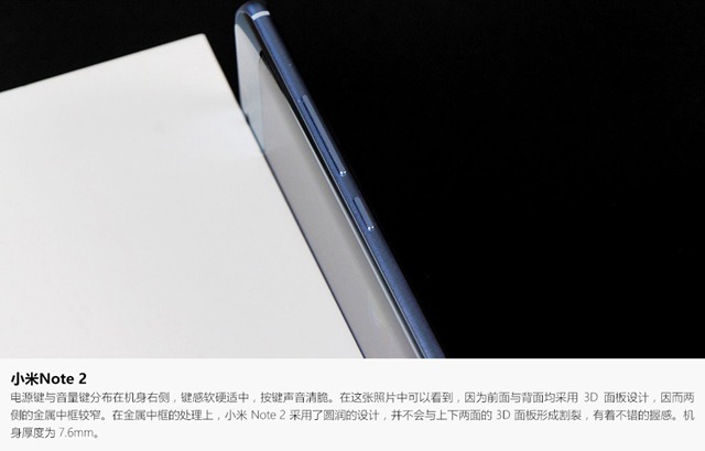 ▲小米Note 2曲面屏特寫