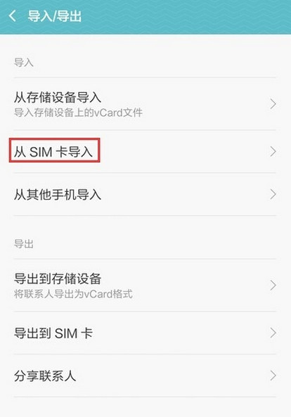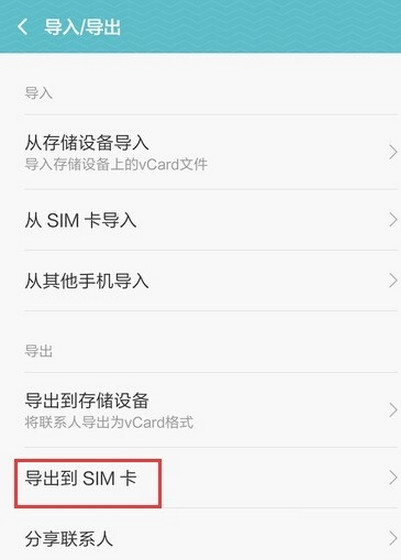 如果讀者想要將手機里面的聯系人導入到手機卡,那就選擇導入到手機卡選項