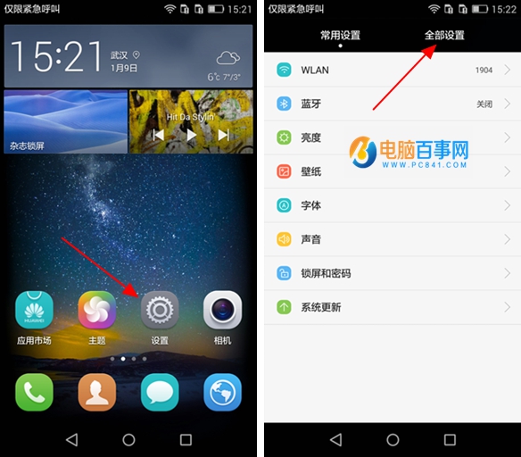 一、首先在華為P8青春版系統(tǒng)桌面找到并點擊進入【設(shè)置】,依次再進入【全部設(shè)置】選項卡,如下圖所示。