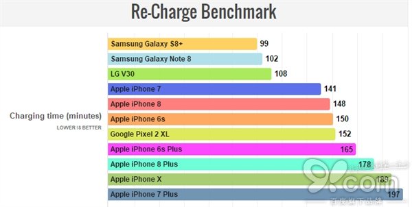 作為對(duì)比,Galaxy Note 8/S8+只用了區(qū)區(qū)100分鐘上下就搞定了。