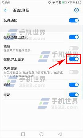 2)這時會看到應用列表,找到要設置的應用打開,然后把【在鎖屏上顯示】選項的開關關閉,這樣就能在鎖屏界面就不會再顯示應用的通知信息了。(如下圖)