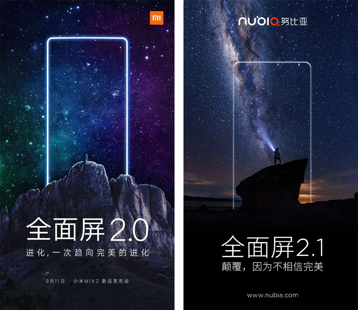 不過就海報而言,努比亞手機一直都有碰瓷小米的嫌疑。首先,“全面屏X.0”的宣傳手法是出自小米之手(小米MIX自稱全面屏1.0);其后,小米MIX2自稱全面屏2.0,但隨后推出的努比亞Z17s卻自稱全面屏2.1,為此很難不會讓人聯想到努比亞是在營銷上碰瓷小米。