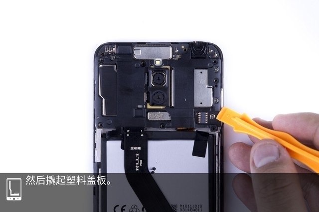 魅藍6T內部結構并不算緊湊,主板和攝像頭很容易就取下來了。