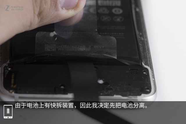 第三步:與之前的一些手機拆解不同,這次我們先把電池給拆了。