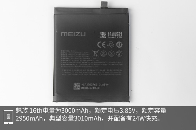 魅族16的電池容量為3000mAh,額定電壓3.85V,并配備24W高效快充。電池容量在同級(jí)別大小屏幕手機(jī)中,略微顯得偏小一些。
