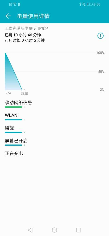 我們的續(xù)航測(cè)試方法為:屏幕亮度手動(dòng)一半、音量插耳機(jī)狀態(tài)下一半、連接WiFi連續(xù)播放B站1080P在線視頻。榮耀8X的表現(xiàn)相當(dāng)搶眼,堅(jiān)持時(shí)間超過了10個(gè)半小時(shí)(2%電量后系統(tǒng)會(huì)自動(dòng)關(guān)機(jī))。