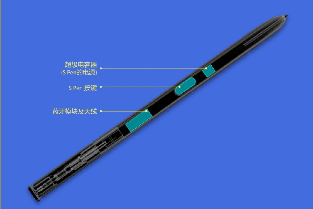 S Pen引入藍牙,也意味著三星必須要在S Pen內部提供電源,并以一種盡可能優雅的方式提供電量補給。