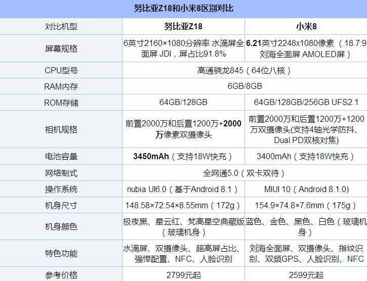 小米8與努比亞Z18區(qū)別對(duì)比評(píng)測(cè) 努比亞z18和小米8哪個(gè)好?