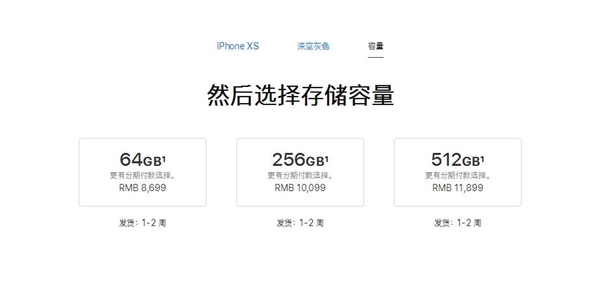 iPhone XS 64GB、256GB和512GB對應(yīng)售價分別是8699元、10099元和11899元;