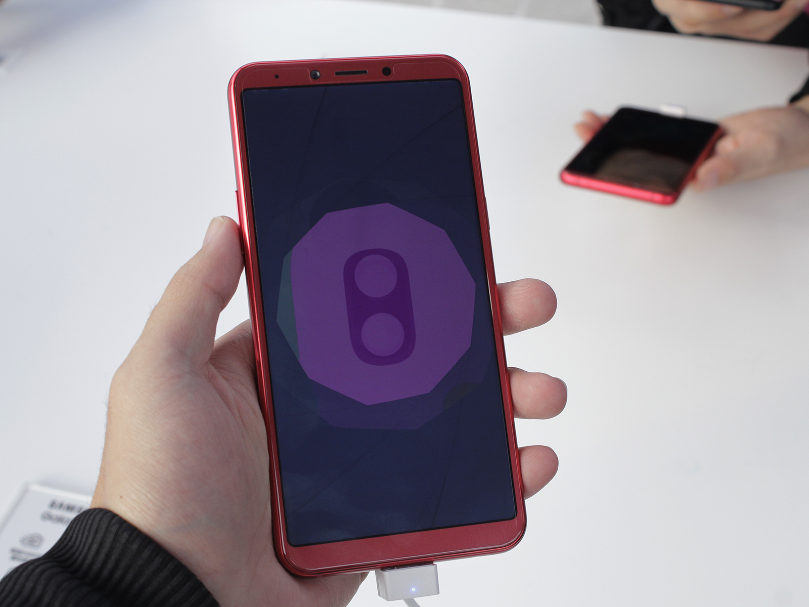 Galaxy A6s的雙攝模組、閃光燈和指紋識別傳感器都是圓矩形,延續了A9s的和諧風格。圖為錦鯉紅Galaxy A6s。