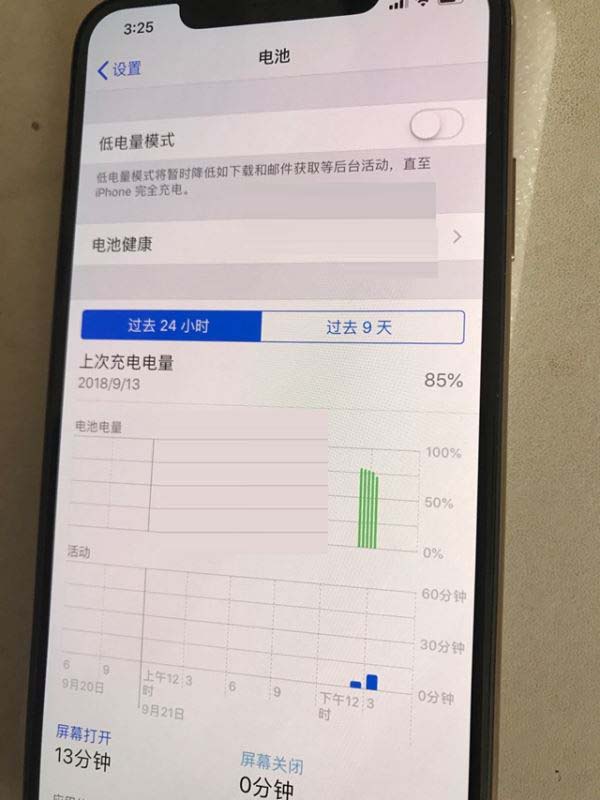 iPhone Xs和iPhone Xs Max電池設置界面是沒有電池百分比開關按鈕