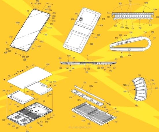 在結構設計上,三星在2017年8月份就已提交了折疊設計專利。第一種設計專利為了實現折疊后機身平整,而增大了OLED屏幕彎曲程度,屏幕在轉軸處內部形成了一個大圓弧形,保護屏幕不被過度彎曲而受損。