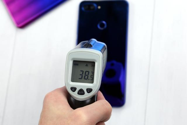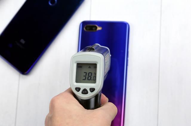游戲?qū)崪y(cè)完畢后,下面將對(duì)小米8青春版和OPPO K1進(jìn)行實(shí)時(shí)的機(jī)溫測(cè)試。經(jīng)過(guò)紅外線溫槍測(cè)試得知,在室內(nèi)溫度約20°C的環(huán)境下運(yùn)行一個(gè)小時(shí)游戲,小米8青春版的背面機(jī)身溫度為38°C,OPPO K1的背面機(jī)身溫度為37.5°C,兩者的機(jī)身溫度差距并不大,都處于可以接受的范圍。